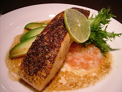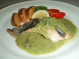 | メダイのスペイン風グリーン・ソース | サーモンのペッパー・ライム・ソース |