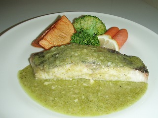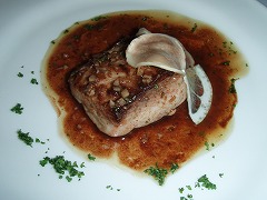 ![]() マヒマヒのステーキ、バルサミコ&クレソンのソース |