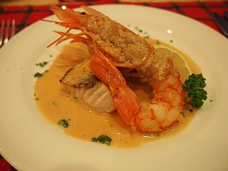 ![]() シーラのハンバーグ風、海老クリームソース。 |