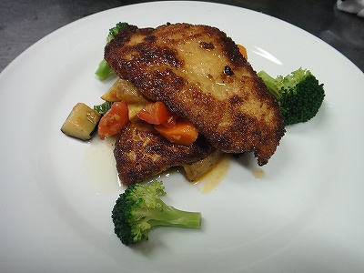 天然魚とシーフードのココナッツ ワラサのカツレツ、ミラノ風