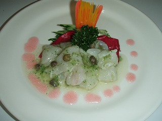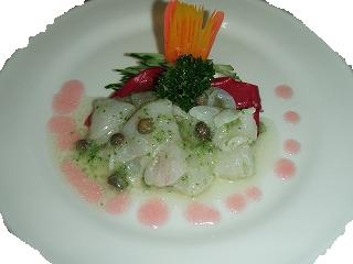 ![]() マヒマヒのマリネ、レッドオニオンソース |
